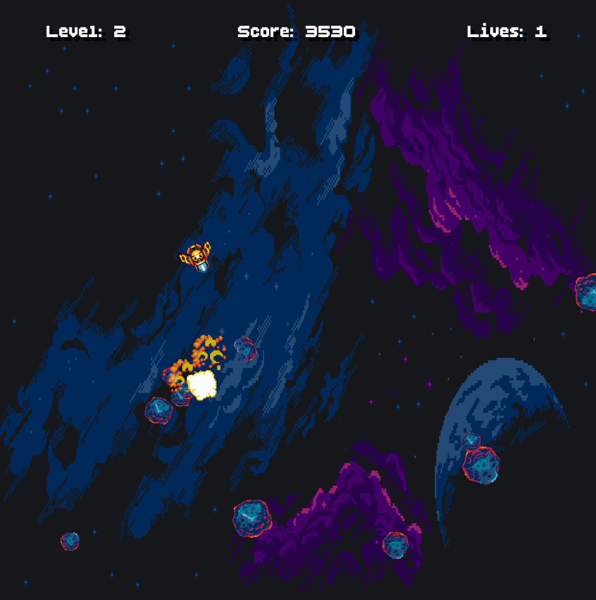 This game is a retro-style space shooter inspired by the 1979 arcade classic "Asteroids".